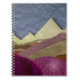 An abstract landscape with unique colours and textures showing a mountain scene in shades of purple, tan, beige, and brown.
