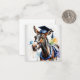 This Flat notecard features a watercolor illustration of a mule wearing a graduate cap.