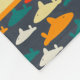 Simple but sweet shark pattern fleece blanket in navy, teal, red, orange, yellow and grey.