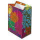 multi colour chrysanthemums on olive wrapping pape medium gift bag