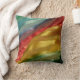This stylish pillow features a photo of multi-coloured fabric reminiscent of a rainbow. The colours shade from green to blue to red to golden yellow, and back to green. The design is on both sides.