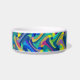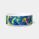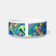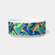 This is a heavy, durable bowl decorated with Tibbies of many colors, the perfect size for hungry/thirsty Tibs. The design is interesting and printing clear.