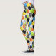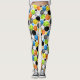 This modern pickleball pattern has tangerine, green, yellow, blue and grey pickleballs placed in a circle on a grey grids with a white background. A fun pair of leggings for your next pickleball event.