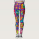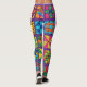 Leggings with a bright and colourful hand-drawn design featuring traditional sampler quilt blocks.