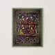beautiful stained glass window in multi colours with christ and his apostles within a six sided ornate frame with leaves and filigree. lovely colourful biblical event with jesus on a donkey and four apostles around him with two carrying a palm leaf. bright and colourful bible scene of christ entering jerusalem in mediaeval style and in multi colours.