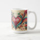 A vibrant watercolor heart design adorns this charming coffee mug, featuring a spectrum of rich and lively colours that seamlessly blend together. The multi-coloured heart creates a visually captivating and cheerful aesthetic, making it a delightful and stylish addition to your morning routine or a thoughtful gift for someone special.