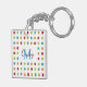 Multi-coloured polka dots on personalised double sided square, acrylic keychain. Personalised with first name overlapping initial. (same on front and reverse)