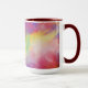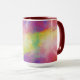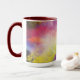 A burst of colour two toned coffee mug with maroon interior and handle.