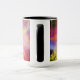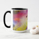 A burst of colour two toned coffee mug with black interior and handle. "WAKE UP TO COFFEE"