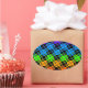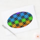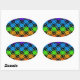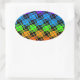 Multi colourful chequered rainbow mirror image oval sticker