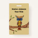 This name or identification badge is tan with a fantasy owl with blue circle eyes in multiple colours of yellow, blue and red sitting on a brown tree branch with green leaves. Customise your name and information with the templates.