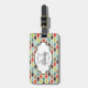This beautiful luggage tag features a scalloped design of red, blue, brown, green, and white on front and back with areas you can customise with your name and last name initial as well as phone number or full address.