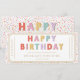 This birthday gift voucher design features a colourful dot design. The "happy birthday" heading is an image that cannot be edited. All of the other text is fully editable. For more advanced customisation of this design, simply select the "Customise It" button above.
