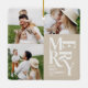 Colourful vintage graphic beige typography merry chritsmas multi photo holiday ornament design. Part of a bold fun holiday collection.