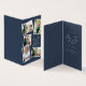 Modern minimal stylish multi photo family home decor elegant script text peace, joy and love Holiday Christmas card and party invitation. Modern on trend navy blue colour can be changed.