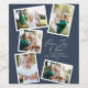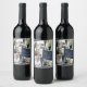 Modern minimal stylish multi photo family home decor elegant script text peace, joy and love Holiday Christmas favour gift wine label. Modern on trend navy blue colour can be changed.