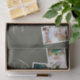 Modern minimal stylish multi photo family home decor elegant script text peace, joy and love Holiday Christmas gift wrap. Modern on trend olive green colour can be changed.