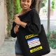 A great tote bag with a progressive message to carry your books and other needed items. Design features a multicolor stack of books with black on yellow text that reads "CAUTION! MAY CONTAIN BANNED BOOKS".
