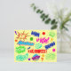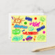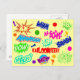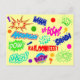 Multicolor comic call-outs postcard. Background colour can be customised.