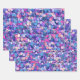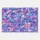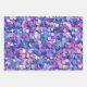 Layers of scattered round confetti in purple, turquoise, blue and pink.