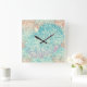 Multicolor Floral Doodle Pattern Square Wall Clock