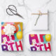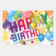 Bright and festive flat‑sheet wrapping paper featuring colorful balloons, confetti, and bold “Happy Birthday” lettering — perfect for wrapping gifts with cheerful, party‑ready style.