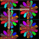 Retro And Asian Inspired colourful floral bold design on black background.