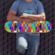 A cool skateboard with multi-coloured and intersected rectangles. Makes a cool gift!