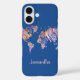 Multicolor World Map- multicolor abstract world map, blue background, aeroplane with destination stops