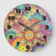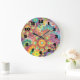 Multicolored Art Deco Flower Shapes Pattern Large Clock