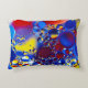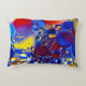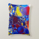 The cushion is small to medium sized. It can be washed. It is well constructed. The material used is pleasant and feels decent quality. It has a very slight plush feel which is good. It is well labelled and its care clearly stated. Theres nothing not to like about it. All in all a good item. The deduction of one star overall is due to long delays in delivery to the UK. It's not clear if this was due to Zazzle or somewhere else in the chain as I did not receive status updates of dispatch or progress. I cannot comment anymore on that other than to say that was our experience but it may not be the same for you. The printing was surprisingly close to what we were expecting. Its an art piece and on material so its hard to assess the precision of printing but it seems close to the original. The soft lines are reproductions of the original. The colour is a fair reflection of the painting. This was printed in the US and it looks like US quality. No issues.