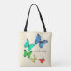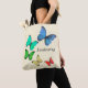 Beautiful Multicolored butterflies on white Tote Bag. Text can be personalised. Elegant women shopping bags.