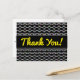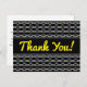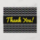 This postcard design features a multicolored chain-like pattern on a black background. It also features the appreciative message "Thank You!" on the front in yellow script-like text, along with a personalised message of gratitude on the back.