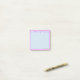 Multicolored confetti on light blue background with violet frame Post-It Notes. Text "Good things are coming" can be personalised.