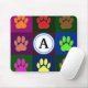 Multicolored Dog Paw Print Pattern With Monogram Mouse Mat