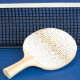 Overall, it's a nice product but for what you pay the quality isn't very good. The way it's glued together, as you can see in the pictures, is messy, the glue is visible and shiny, there's some ink staining that looks like black fluff but isn't, it won't come off. On the paddle's black surface there are also little white marks here and there. It's not too easy to show in the pictures because of the flash but I tried to showcase the little white blemishes that ruin a smooth black surface. This was meant to be a gift and it just looks sloppily put together unfortunately. A few imperfections that mar what could have been really great. The printing was neat.