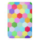 Multicolored patchwork pattern of hexagons in a bright, fun and funky design.