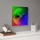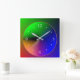 A multicolored illuminated design in blue pink/orange and green. This simplistic artistic design has white numerals.Available in square and round shapes.