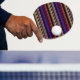 Multicolored lace on black ping pong paddle