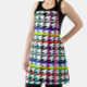 Colourful Plaid Tartan Check Lines On Black and White Houndstooth Pattern Design