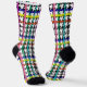 Multicolored Lines On Plaid Houndstooth Design Socks