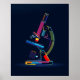 Abstract microscope biological, pharmaceutical magnifying instrument from multicolored paints Coloured drawing illustration of paints