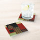 Multicolored Panel Painting with Brown Leaf Glass Coaster