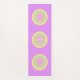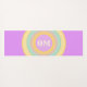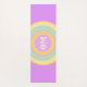 Fashion Eco friendly Yoga mat with three multicolored pastel circles on violet background. Central multicolored circles have the OM text. The OM text can be customised.