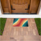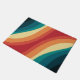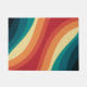 Multicolored retro style waves geometrical pattern illustration with orange, red, beige, blue and turquoise wavy stripes decoration on dark blue background