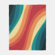 Multicolored retro style waves geometrical pattern illustration with orange, red, beige, blue and turquoise wavy stripes decoration on dark blue background