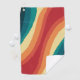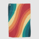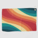 Multicolored retro style waves geometrical pattern illustration with orange, red, beige, blue and turquoise wavy stripes decoration on dark blue background