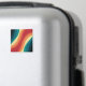 Multicolored retro style waves geometrical pattern illustration with orange, red, beige, blue and turquoise wavy stripes decoration on dark blue background