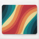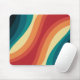 Multicolored retro style waves geometrical pattern illustration with orange, red, beige, blue and turquoise wavy stripes decoration on dark blue background