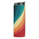 Multicolored retro style waves geometrical pattern illustration with orange, red, beige, blue and turquoise wavy stripes decoration on dark blue background